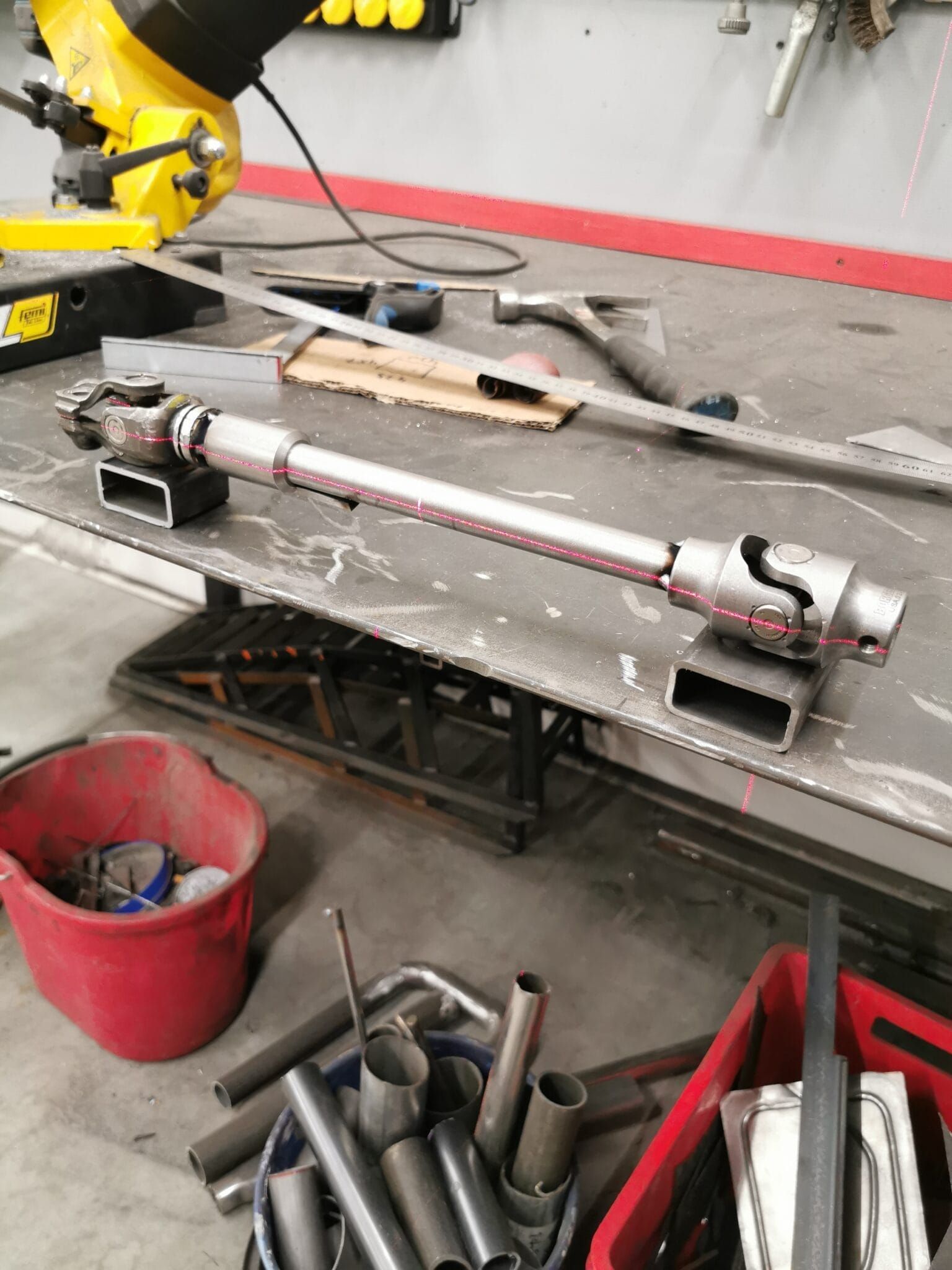 Polkimien sijainnin varmistumisen jälkeen tulipelti valmiiksi ja rattiakselin tekoon.